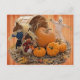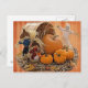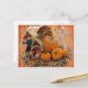 Skördevykortet har en hö basket med pumpor och löv med två söta fågelskrämmor och ett spöke. Perfekt hälsning för den kommande fallsäsongen.