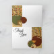 En vacker höstskörds tackkort. Lämplig att ges för Thanksgiving, baby shower, bröllopsfest eller speciellt tillfälle. Guld, grön, beige, vinröd. Ett roligt cirkel- och hjärttema. Kortet säger Skörde Segar på utsidan. Det finns en serie olika färgade cirklar med brads och hjärtan som dekorerar dem. Färg på insidan upptill, nedtill och på baksidan.