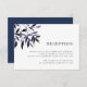 Rustikt elegant mottagningskort för höst- eller vinterbröllop med en vattenfärgsmålning av höstblad i rika höstfärger av plommonlila och marinblått. Personalisera med er mottagningsinformation inklusive tid, plats och eventuell ytterligare information som parkering eller transport. Designat för att matcha vår Skördeplommon-inbjudan samling.