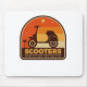 Moped scooter ger för manar eller kvinnor som kör skotrar eller mopeder i kärlek. Utformningsfunktioner återgång till solnedgångstema och lustig puff