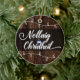 Den skotska julhälsningen (i Scots Gaelic) - holday prydnad Nollaig Chridheil för lantlig stil, med en skotsk flaggabauble, julljus och snö planlägger på en lantlig bakgrund.