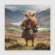 Bilden visar en man klädd i kilt och kavaj på Skottlands högländer, en Highland-ko som håller på en säckpipa. Om du vill ha den här bilden i svartvitt går du till Anpassa, hittar filter på höger sida i Designer och klickar på Svartvitt-filter. Glad design.