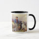 Skotsk pojke med wolfhounds i en höglands- landsca mugg