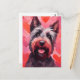 En färgrik Alla hjärtans dag-design med en skotsk terrier.