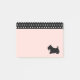 En svart skotsk terrier pryder dessa svarta och vita prickiga Post It Notes. Dessa söta post-it-lappar är bra för kontoret, skolan, lärare, köket osv...Designen är från originalkonst.