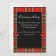 Elegant, sofistikerad skotsk tartan i röda gröna vita färger, svart blomsterdamast, blank silkes slinga och 3D rubin, smaragd ädelstenar..Lätt att anpassa med dina initialer och egen text som en anmälan, plats kort, spara datum, tack, möhippor, födelsedagar, fester, förlovningsfirande eller nästan vilken händelse som helst!.