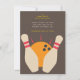 En bowlingboll som slår stift finns i denna moderna inbjudan som kan användas för födelsedagar, årsdagar, bowlingleagues-turneringar eller andra evenemang.