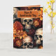 Dessa spöklika skallar är omgivna av en mängd olika höstblommor. Detta kort har ett område inuti där du kan lägga till ditt eget meddelande.