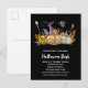Skräckhus av pumpa med spöke och fladdermöss inbjudan vykort