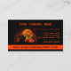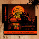 Halloween affärskort med en bild av ett skräckhus vid fullmåne.