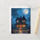 Skräckhus Halloween Handmålad Helg Vykort