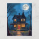 spökhushushalloweenhandmåladhögtidvykortkortspöklikmålningmåne