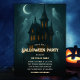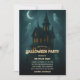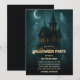 Skapa stämningen för en läskigt rolig natt med denna inbjudan till Halloween-fest i ett spökhus. Ett högt gotiskt hus lyser under en halvmåne medan vänliga spöken svävar genom natthimlen - perfekt för en kostymfest för vuxna eller familjer. Anpassa värdens namn, datum, tid, adress och RSVP. Bra för teman med spökhus, födelsedagar i oktober, grannskapsfester eller din årliga Halloween-fest.