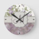 Ett digitalt avbildar med ett mönster för blom- tapet för vintage av purpurfärgade ro för lavendel och rosenknoppar och mjuka krickagröntvines och löv på en krämig bakgrund överst, och en lavendellila- och grå färgmarmor avbildar på grunden, med ett band överdra, och en anpassademonogramtext förseglar.