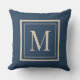 Skräddarsydd blå och vaniljmonogramkudde med ram kudde