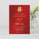 Denna version har en rubrik att tillkännage för bröllop från brudgummens och brudgummens föräldrar. Den här eleganten kinesiska bröllopsinbjudan innehåller en symbol för artistisk lycka i guld dubbla på en blommigtens ruby-röda skuggande bakgrund. Bride and groom namn i ett handskrivet skript för elegant. Kinesisk bröllopsinbjudan eller teceremonin.
