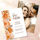 Denna eleganta orange ros- blommiga bröllopsinbjudan är designad för par som söker sofistikation och tidlös skönhet när de tillkännager sin speciella dag för sina nära och kära. Ert favoritfoto av er och er älskade kan inkluderas på baksidan, vilket gör denna inbjudan till en verkligt unik tillkännagivelse när ni sprider glädje i era gästers brevlådor och väcker spänning inför ert kommande bröllop.