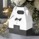 Den här gable-stil-förmånslådan, som visas här med en söt svart bog och knappdesign, har en mall som gör att du enkelt kan lägga till ditt eget namn- och bröllop-datum. Med eleganta bilder som återger den förfinade detaljen i en klassisk tuxedo omfattar denna samling i bröllop inslag som pleated mönster, crisp whites och glansigt svarta accents för ett skräddarsytt, modernt vibe. Perfekt för par i två grupper, som kärlek fet minimalism, ger den här designen en enkel estetisk elegant som är både tidlös och sofistikerad. Sök i ID1090 om du vill se andra delar i den samordnade uppsättningen för bröllop.
