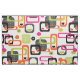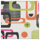 Ett nytt, ljust, funky yet stilfullt retro inspirerat modernt mitt- århundrade, geometriskt mönstrat tryck. Rosor orange, grönt, svartvitt tyg; tillgängligt i ett primat av tyg utformar och snittet till längder för att passa din sömnad och för att tillverka behov.