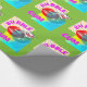 En rolig, ljus och färgrik retro popkonst inspirerade designen som poppar precis! med stor röd läppar som blåser en bubbelgum, svälla på en rasterbakgrund, och humorbokstil förser med text "pop". Funky speciell gåva för modern novelty som slår in papper.