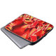 Bild av röda band med röd bakgrund och orange och en effekt som simulerar regn eller remsor i bran med enhetliga repor som simulerar rörelse eller acceleration.
