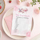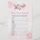 Gästerna kommer att utmana kärlek genom att obscena det populära barn namn på detta adjektiva kort med en flygande stork och en mjuk molndesign för rosa. Elegantens utformning och lekande tema gör detta till en minnesvärd del av dina flickduschaktiviteter - en roligt för att behålla alla att gissa och gnälla!