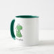 Rolig grön tecknad skramlande orm. Han har ovala ögon med höjda ögonbryn, en skramlare på svansens ände och sin tunga som sticker ut ur en busig leende. En mall nedan för att lägga till ditt namn.