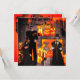 Inbjudan till Halloweenfest på spökhus av konstnär. Lysande pumpor, brinnande ljus, gubbar, stor öppen spis med brinnande eld. Skrämmande och kuslig. Hela gänget kommer att vara där med Frankenstein, Edgar Allan Poe och den onda häxan! Fyll i din egen information.