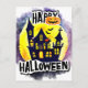 Skrämmande Glad Halloween Natt med Raven Bat Häxa Vykort
