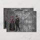 Coola och kusliga Halloween Spara datum bröllopsinbjudningar med en fantastisk gotisk skräckskellebrud och -brudgumme. Bruden är klädd i en vacker vintage svart, rosa och grön brudklänning med blommor och fjärilsprydnader. Brudgummen är stilig i sin topp hatt, frack och käpp. Bakgrunden är en elegant vintage gotisk svart, grå och vit shabby chic collage med utsirade vita rullar dekorationer, en trollslända, antika bleknade skrivningar och stilfull harlekinmönster. På baksidan av dessa funky gotiska inbjudningar finns en glamorös tryckt svart pärlor och spetsmatta med text som du kan anpassa med dina evenemangsuppgifter. Klassiska, trendiga roliga inbjudningar. Jag har matchande produkter i min butik. All text kan enkelt anpassas för att passa dina behov och du kan ändra typsnitt, färg och storlek om du önskar. Om du behöver hjälp med att anpassa din produkt, vänligen kont