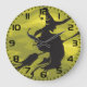 Skrämmande Halloween-häxa flygande på kvaststång Stor Klocka