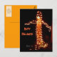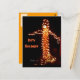 Det här Halloween-kortet har många användningsområden; kommande kostymfest, säsongsrelaterad hälsning eller som inbjudan till fest. Jag utformade det här postkortet från ett originalfotografi av mina utomhusdekorationer för Halloween. Jag skapade ett 12-fots pumpamonster av orangea lampor och lönnträ. När det blåste svajade grenarna och det var mycket skrämmande, men de som kom för att trick or treat tyckte om det.