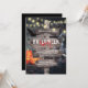 Skrämmande halloween-inbjudningar med ett spökhus, pumpor, spindlar, fladdermöss, dödgrävaren, strängljus och en rustik träskylt med partyinformationen på.