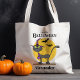 Få dina spöken och troll redo för trick or treating med denna personliga Halloween-handelsväska. Med en busig katt med ett elakt grin, kusliga fladdermöss, typsnitt som lyder “Happy Halloween” och ett anpassningsbart namn, är denna väska perfekt för att bära söta godsaker. Lägg till ditt barns namn för att skapa en unik väska som kan användas år efter år.