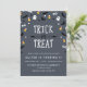 Söta, kusliga halloween-födelsedagsinbjudningar med konfetti av spöken, ögon, majskorv, fladdermöss och häxor skor & kvastar. Handskriven typografi "Trick or Treat" är omgiven av konfetti; nedan finns den personliga inbjudan texten. Lätt texturerad bakgrund - du kan till och med ändra bakgrundsfärgen själv genom att använda verktyget Anpassa / Anpassa. Perfekt som halloween-fest inbjudningar också!