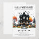 Välkommen gäster till din Halloween-kostymfest med denna spökliga men enkla inbjudan. Designen har ett svartvitt färgschema med en blandning av ornamentala och serifferade typsnitt. I mitten av inbjudan finns ett svart spökhus, accentuerat med inslag av orange från pumpor, jack-o-lanterns och kusliga träd. Lekfulla spöken och fladdermöss svävar runt för att fullborda den roliga, kusliga känslan. Teckensnittet har en vintage, grunge-inspirerad känsla, vilket ger inbjudan en nostalgisk, gammaldags look. Denna Halloween-festinbjudan är perfekt för att sätta tonen för en kväll med spöklik rolighet. Söt gotisk vintage spöklik kostym Halloween-festinbjudan.