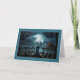 Skrämmande kyrkogård under fullmåne Halloween-kort Helgkort