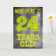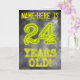 Framsidan på denna kusliga, anpassningsbara födelsedagsdesign har budskapet "24 ÅR GAMMAL!" med tecken och siffror som har ett mystiskt, glödande aura-inspirerat utseende, på ett spöklikt grått, molnigt, dim-inspirerat bakgrundsmönster. Framsidan har också ett personligt mottagarnamn. Insidan har ett födelsedagsgratulationsmeddelande som kan anpassas. Ett anpassat födelsedagsgratulationskort som detta kan vara ett speciellt sätt att skicka en födelsedagsgratulation till någon som firar sin 24-årsdag. [~Z0000365]