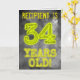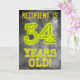 Framsidan av denna mystiskt utseende, personliga födelsedagsdesign har budskapet "34 ÅR GAMMAL!" med tecken och siffror som har ett spöklikt glödande aura-inspirerat utseende, på ett kusligt grått molnigt dis-inspirerat bakgrundsmönster. Framsidan har också ett redigerbart mottagarnamn. Insidan har ett anpassat födelsedagsgratulationsmeddelande. Ett anpassningsbart födelsedagsgratulationskort som detta kan vara ett speciellt sätt att skicka ett födelsedagsmeddelande till någon som firar sin 34-årsdag.