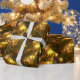 "God jul och ett Gott nytt år" - glamorös helgdag som är papper med gyllene julbalkar, mousserande ljus, gräs koner och Julgran grenar.