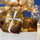 Glamorös julomslutning papper med röda och gyllene julbalkar, mousserande ljus, tinsel och Julgran grenar. Nya förbättrade versioner med sömlös panel (se nedan):