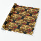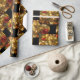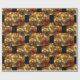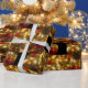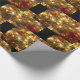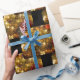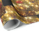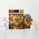 Glamorös julomslutning papper med röda och gyllene julbalkar, mousserande ljus, tinsel och Julgran grenar.