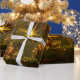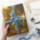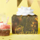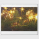 "God jul" - glamorös helgdag som är papper med gyllene julbalkar, mousserande ljus, gräs koner och Julgran grenar.