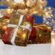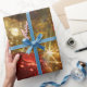 Glamorös julomslutning papper med röda och gyllene julbalkar, mousserande ljus, tinsel och Julgran grenar (sömlös bricka)