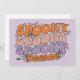 Denna livfulla och lekfulla halloween-design firar den spökliga årstiden med den upprepade frasen "Spökligt, Spökligt, Spöklig Säsong" i feta, retroinspirerade teckensnitt. Orden "Spökligt" är staplade i iögonfallande nyanser av orange, persika och lila, vilket skapar en färgrik och dynamisk visuell effekt. Ordet "Säsong" är skrivet i ett flytande skript längst ner, vilket knyter samman designen med en touch av elegans. Runt texten finns charmiga halloween-element som spindelnät, fladdermöss, stjärnor och små spindlar, som ger en festlig och spöklik atmosfär. Hela designen är lätt prickig, vilket ger den ett vintage, nedslitet utseende som ökar