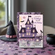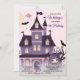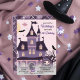 Välkommen till en värld där sött möter kusligt! Denna digitala inbjudan presenterar en bedårande chibi-häx-flicka och hennes spökhus, allt i en förtjusande dämpad palett av lila, rosa och svart. Det är det perfekta sättet att tillkännage en magisk Halloween-födelsedagsfest som är kuslig utan att vara skrämmande!