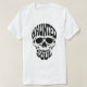 Djärv svart-vit skalle med böjd 'Skrämmande'/'Soul' typografi; högkontrast gothiskt motiv för Halloween, rock och streetwear-fans som söker orädd kant.