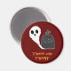 Skrämmande spöke med grav - En läskig magnet för din Halloweenhelg. Du kan ändra texten genom att klicka på "Personalisera"-knappen. Ha en trevlig dag!