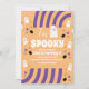 Söta födelsedagsinbjudningar med en retro spökstil och konfetti Groovy Två Skrämmande Två Födelsedag