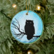 Skrämmande Vintage-Uggla med Silverblå Akvarellmån Julgransprydnad Keramik